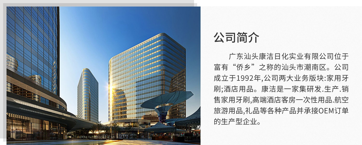 汕頭康潔日化實業有限公司是一家集研發(fā).生產.銷售高端酒店客房一次性用品等各種產品并承接OEM訂單的生產型企業。